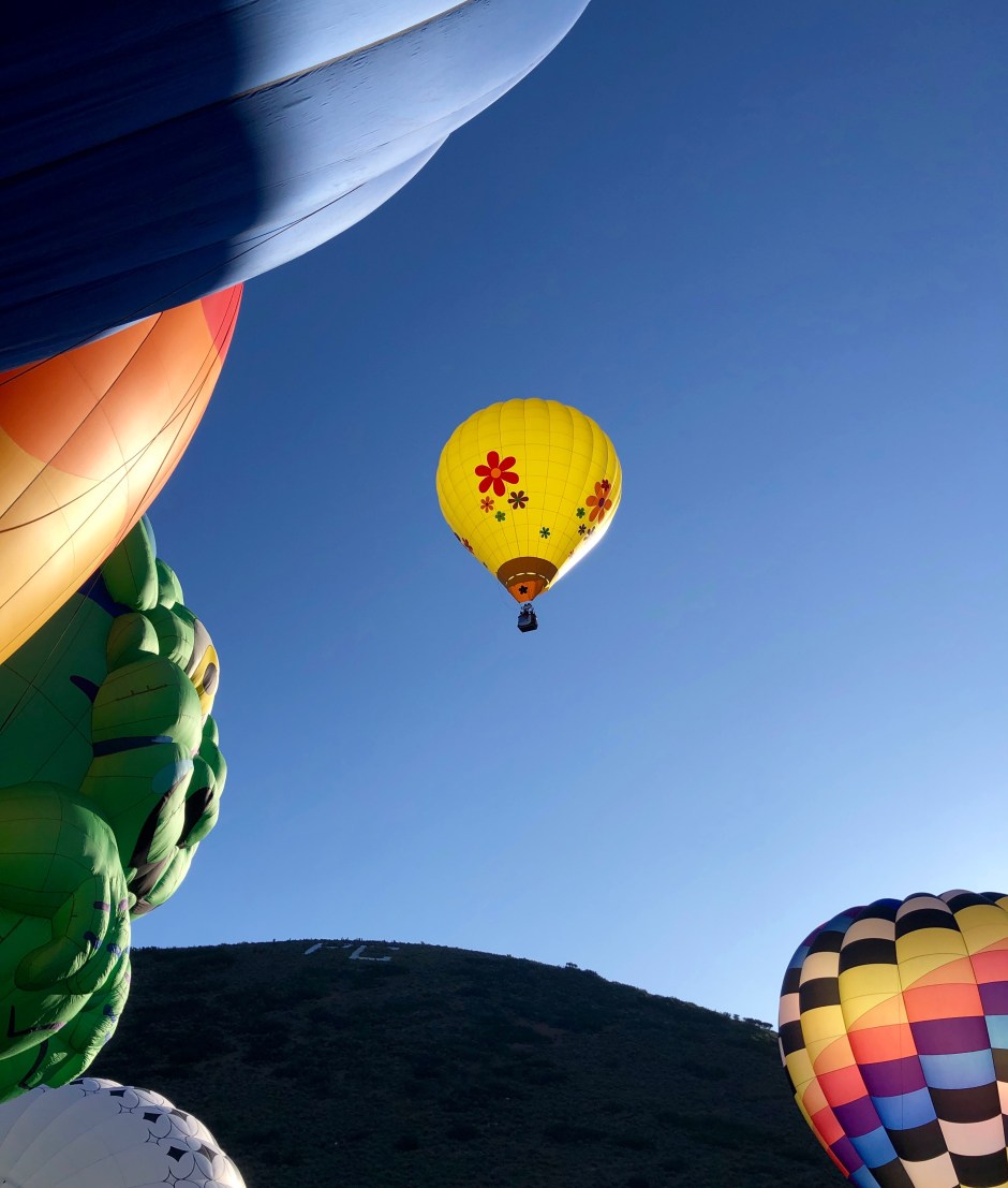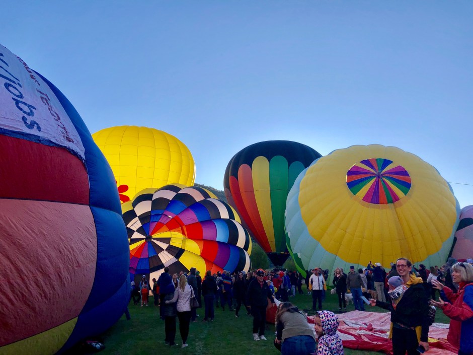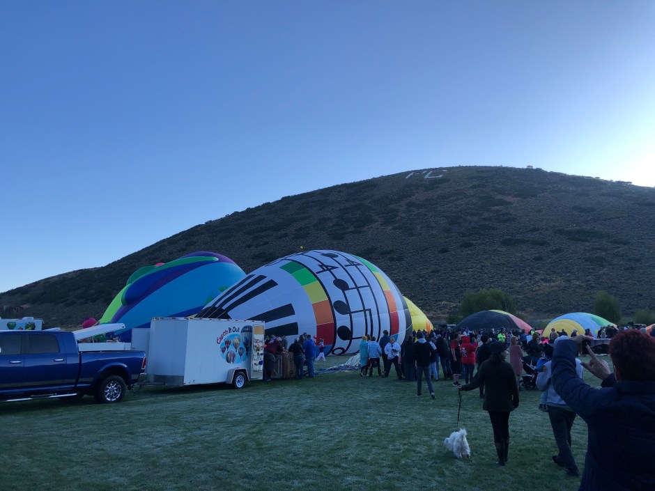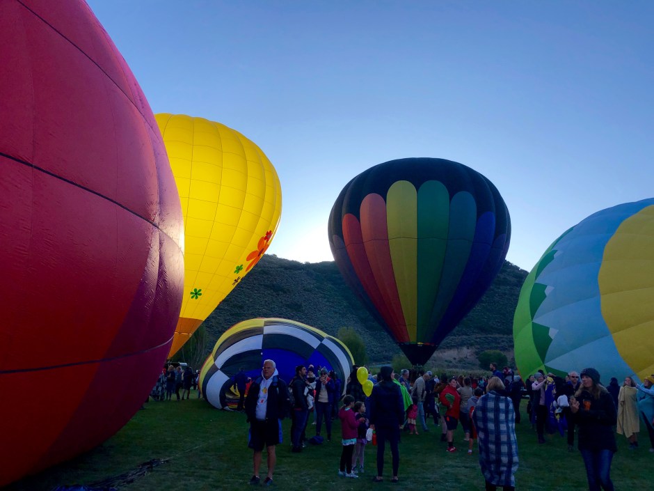 Well, the air was still as can be on the morning of the Autumn Aloft 2019 festival! Oden’s Auntie Frances was visiting so we all bundled up against the crisp fall morning chill and joined the crowds at the fields. Wow. I don’t know what it is about hot air balloons that fascinate me so, but I find them stunning and wistful! Before the sun peeked over Park City Hill, we wandered in between dozens of balloons in various stages of inflation. It’s almost shocking what a free-for-all it is. We were up close as the big flames shot hot air into the balloons. We had to move quickly to the side as a balloon started leaving the ground and coasting toward us. I thought Oden was going to lose his mind with excitement! What a sight for sleepy, 3-year-old eyes!