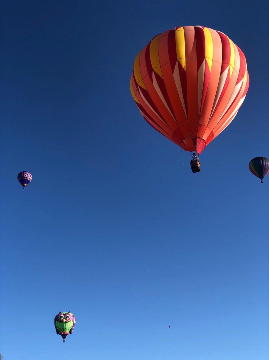 Rumbling tummies eventually convinced us to head home and find some breakfast. We could see the balloons in the sky as we drove home, floating over the golf course. What a view the people riding in the baskets must have had! I’m so glad John’s sister was able to see such a cool local event. And I’ll tell you what- I’ve added “hot air balloon ride” to my bucket list!