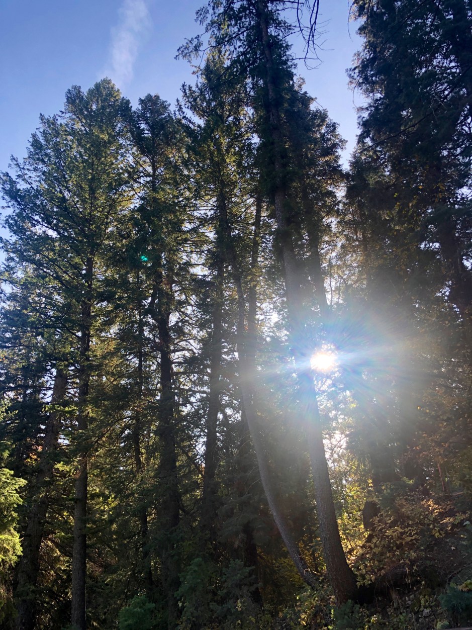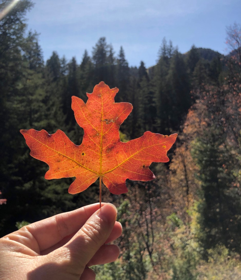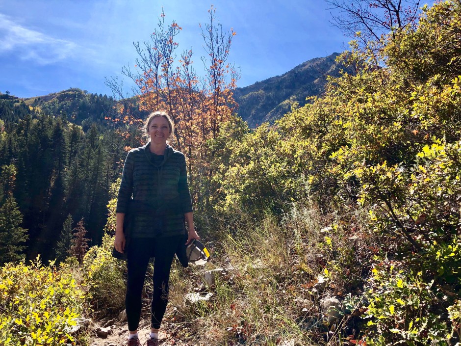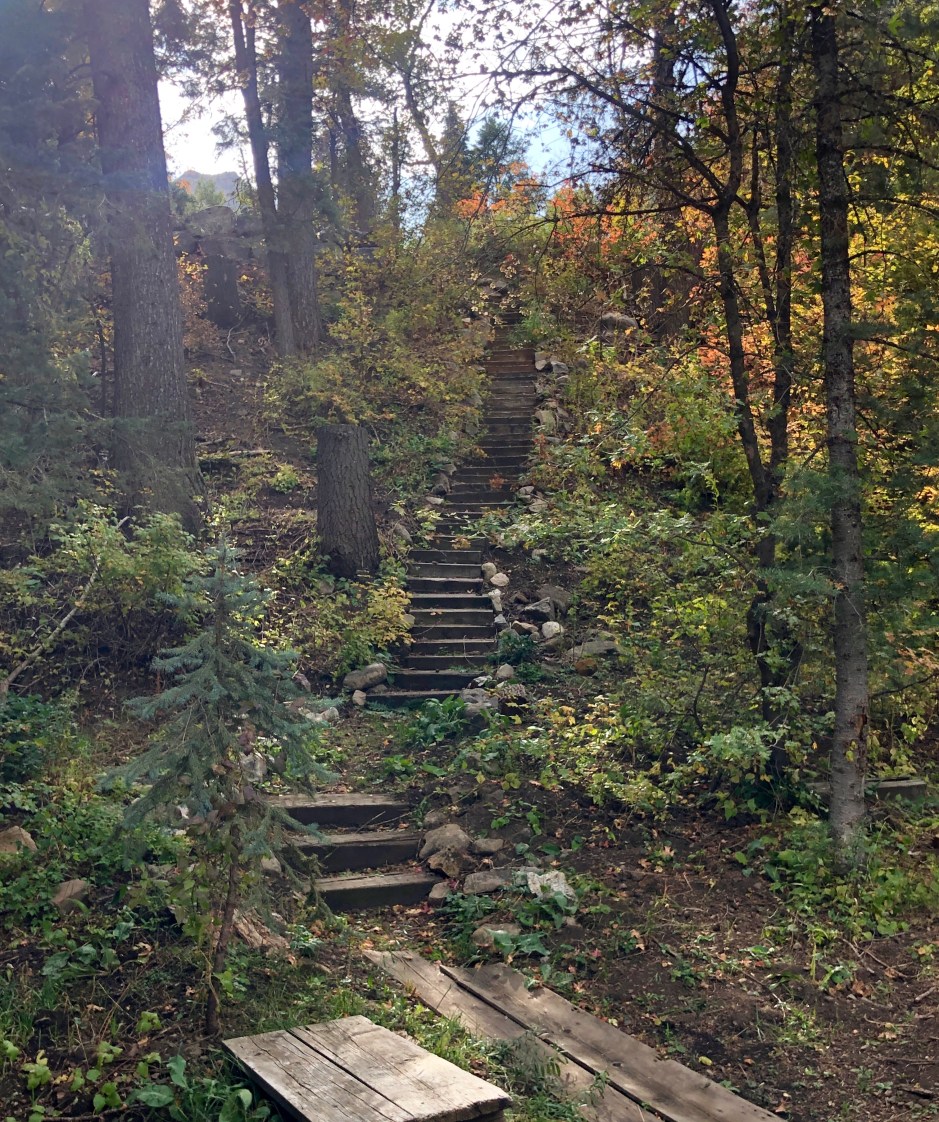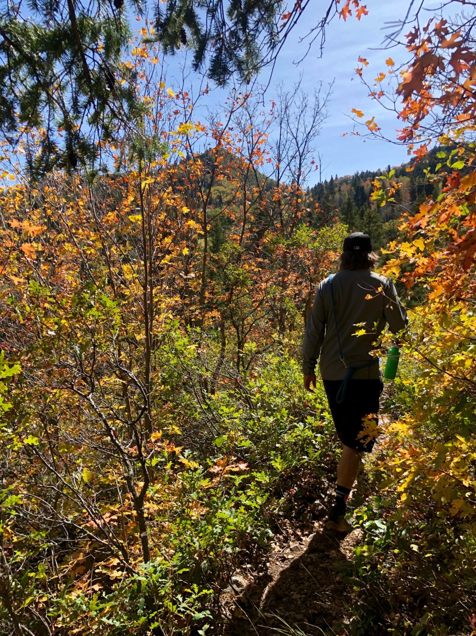 Our main goal for the day was to take a hike toward Stewart Falls. The fall colors were amazing, and Cholula was overjoyed to be sniffing left and right. We hiked as far as we could before needing to turn around to make our spa appointments. There was no way we were going to be late for that. Priorities!