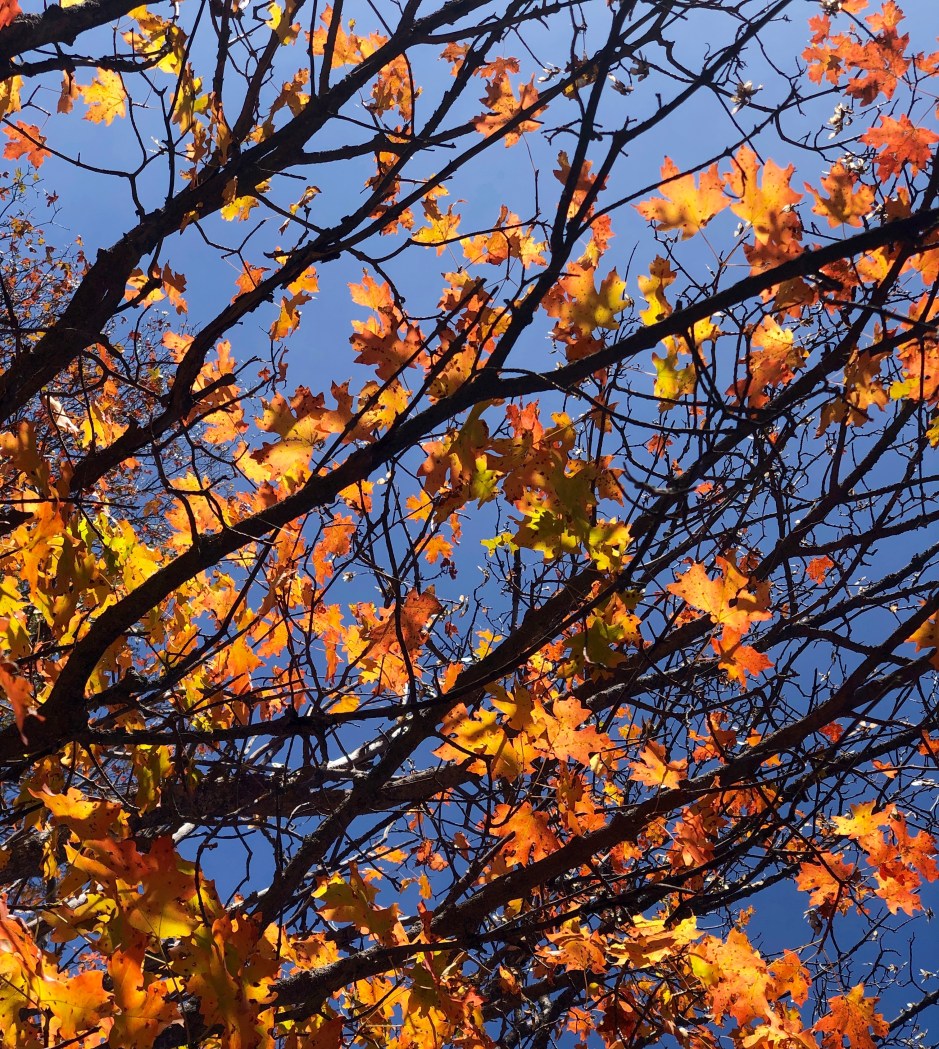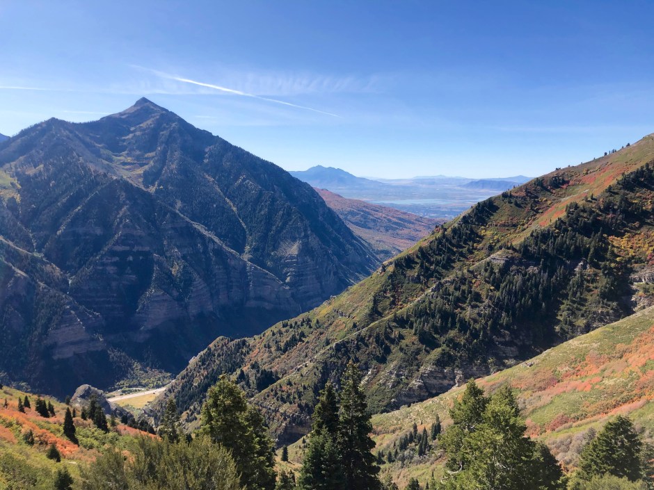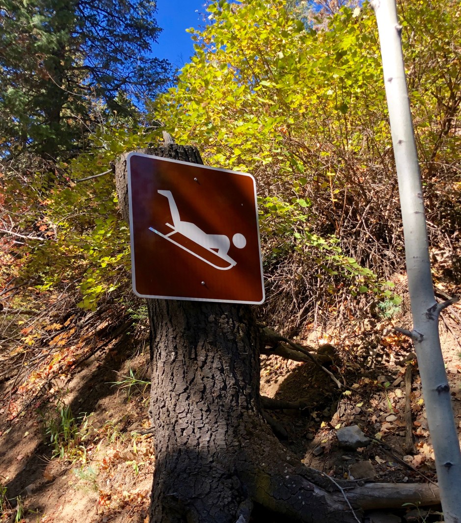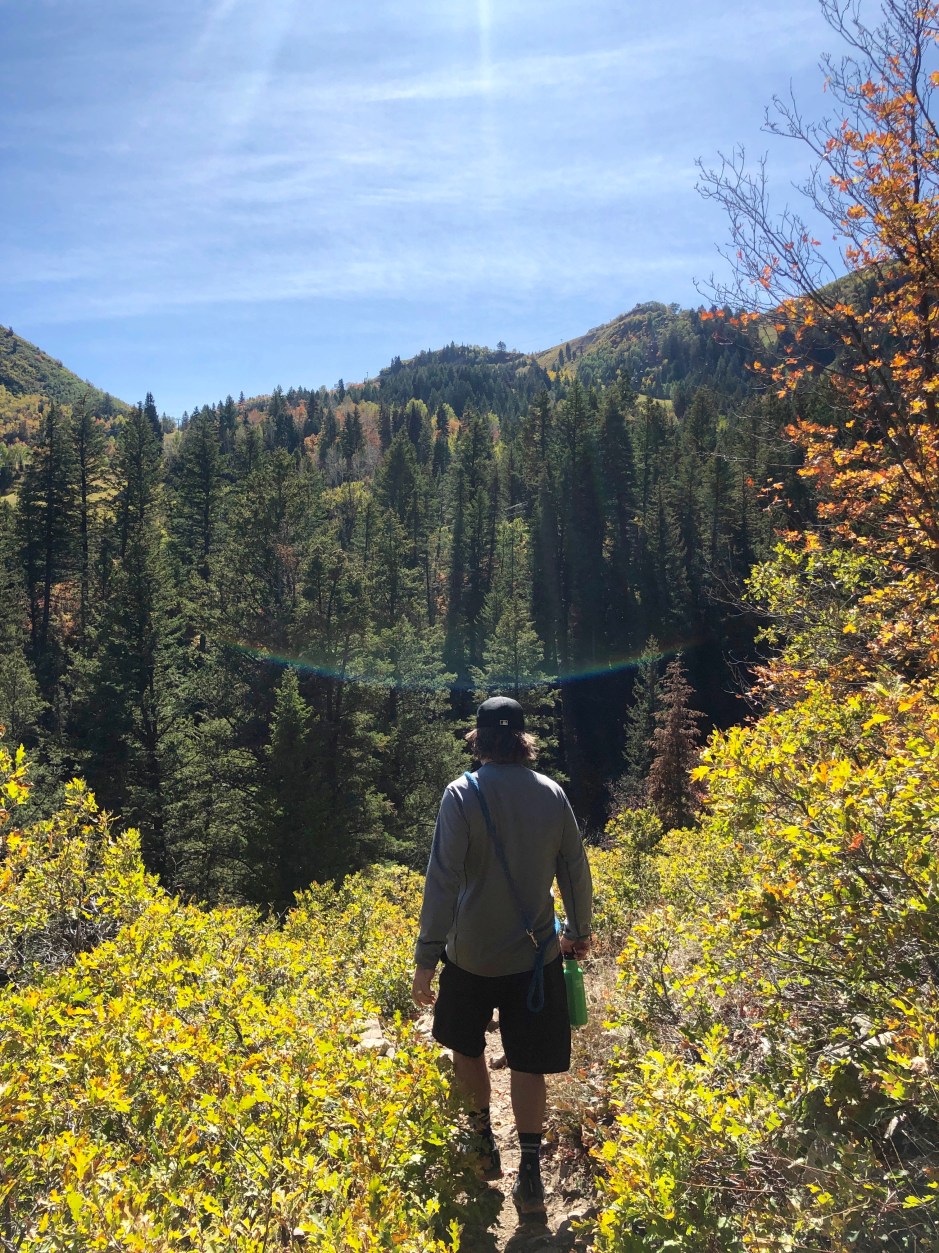 Our main goal for the day was to take a hike toward Stewart Falls. The fall colors were amazing, and Cholula was overjoyed to be sniffing left and right. We hiked as far as we could before needing to turn around to make our spa appointments. There was no way we were going to be late for that. Priorities!