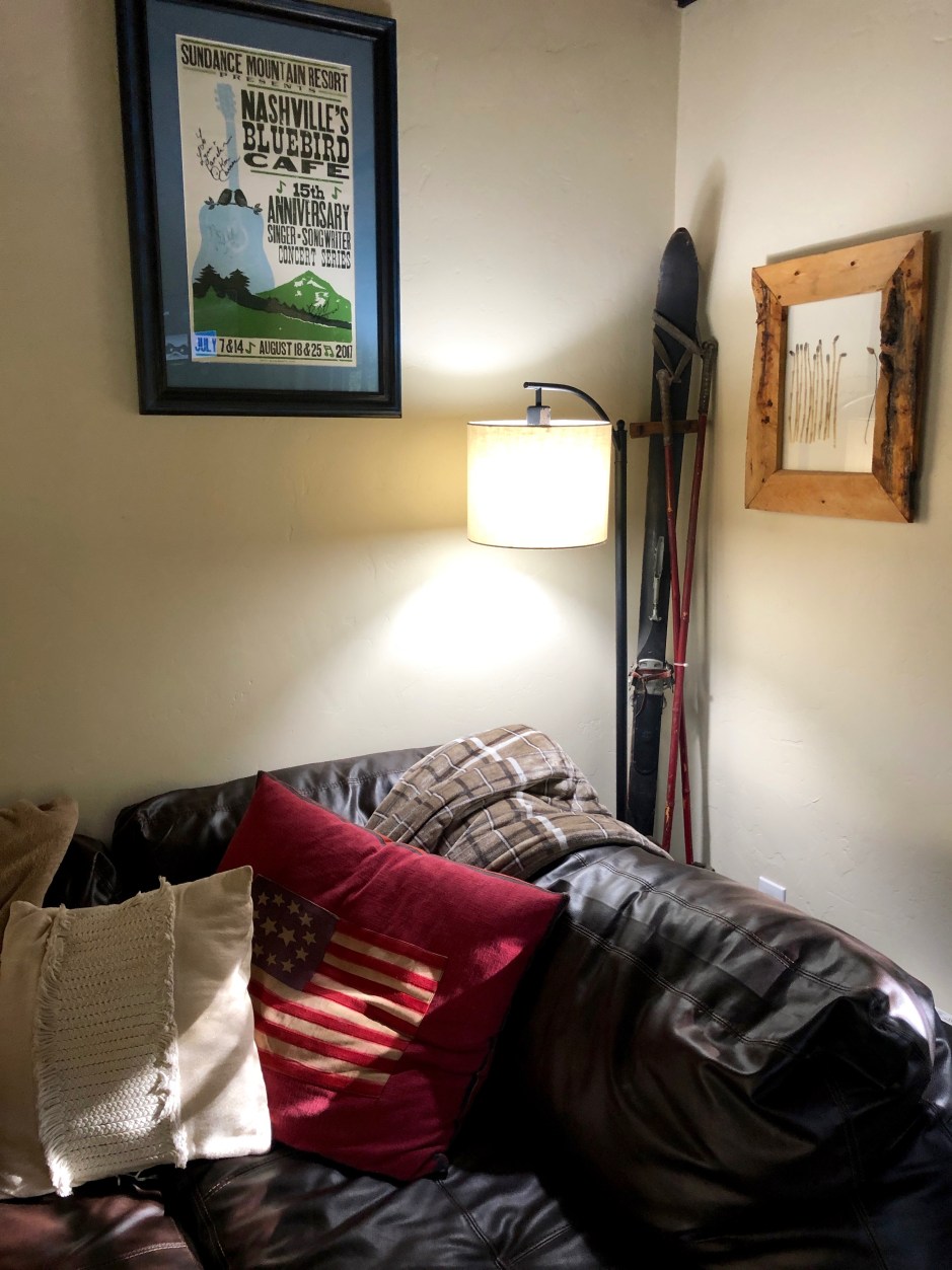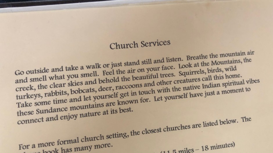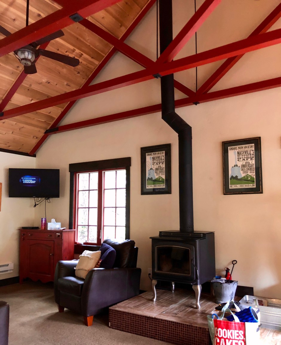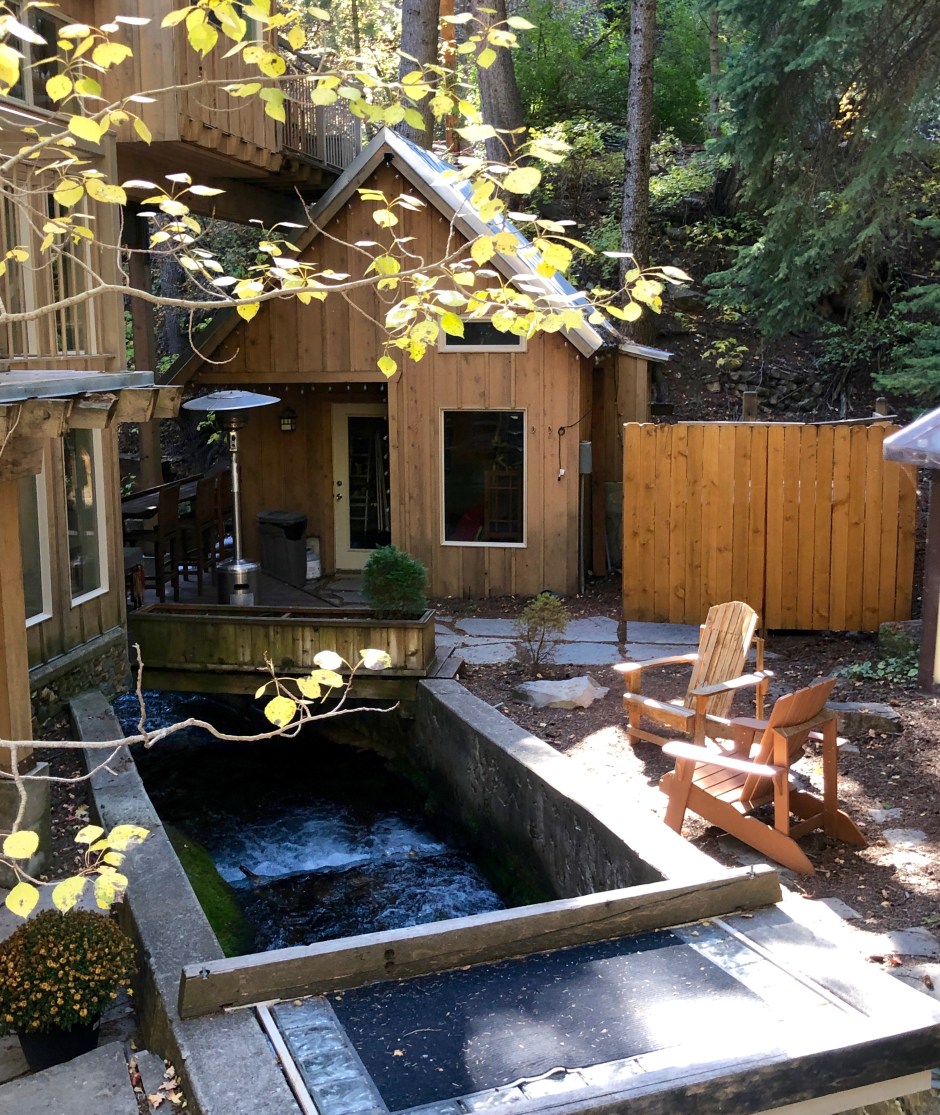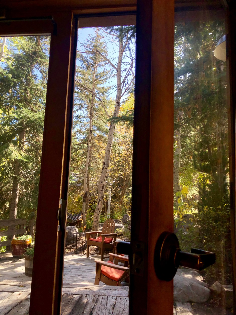 Don’t you love when happy accidents occur? While we love the little cabin rooms at Sundance, we were immediately charmed by the Hideaway Above the Stream. It’s just a few curves up the road from the resort, nestled down among the trees, with a Jacuzzi and wooden deck overlooking a creek. The cabin isn’t large, but the owners created a cozy, welcoming space and there are so many personal touches everywhere. Fuzzy robes hanging by the door for chilly Jacuzzi jaunts. A basket of dog-approved blankets. A binder of helpful information. Even a chest full of extra cozy blankets. The best part was that this magical place was less expensive than the resort that weekend. Jackpot!