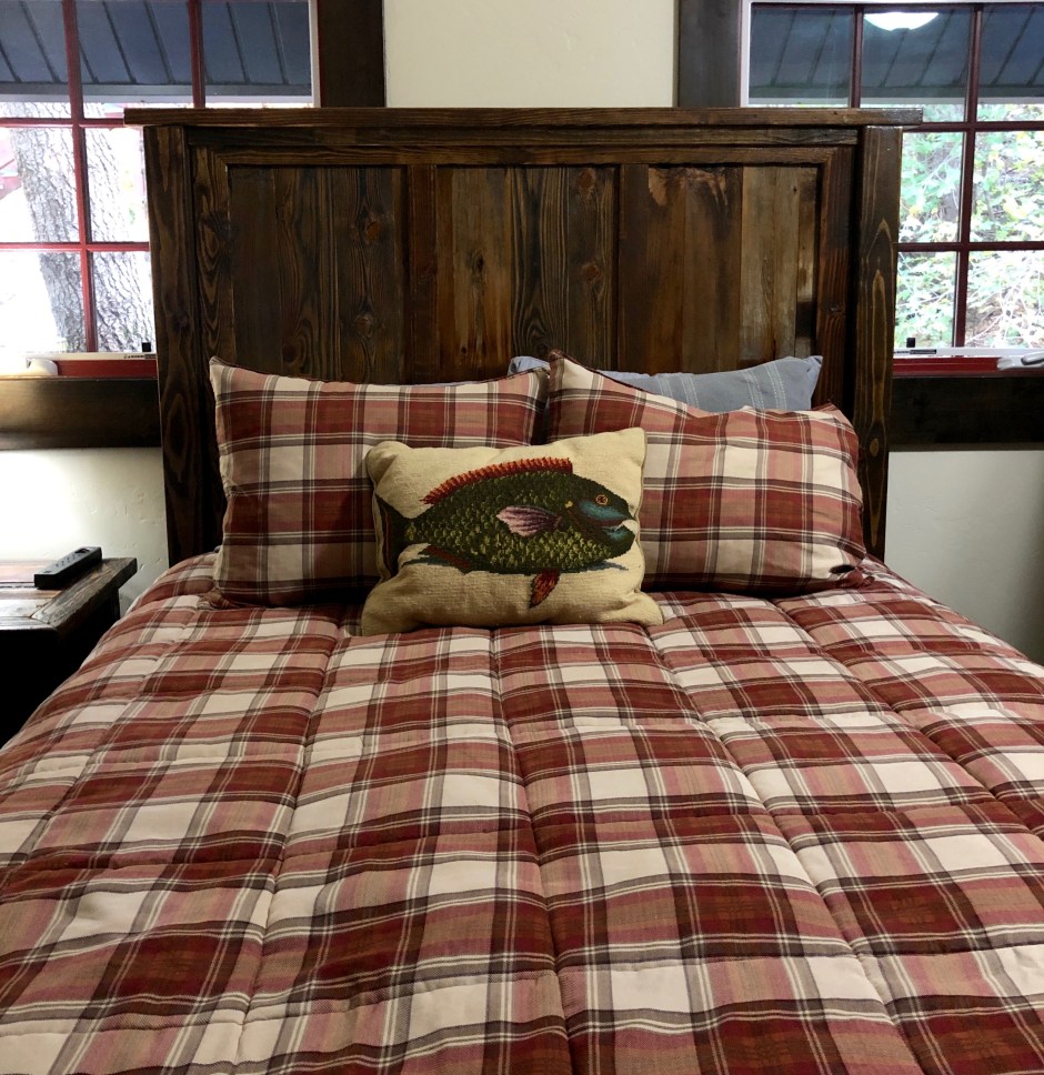 After exploring the sweet cabin, I lost no time in pouring a mug of wine to enjoy in front of the wood-burning stove. John got a crackling fire going before heading out to the hot tub for a soak. I joined him for a bit and it was heavenly to listen to the sounds of the creek and squirrels chirping. I was already plotting how to duplicate this cabin for ourselves somewhere.