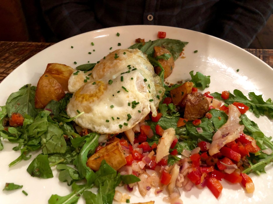 In the morning, I slept as late as my body would allow (not late- sigh, motherhood). I let John snore a bit longer while I toted a steamy cup of coffee out onto the deck, wrapped myself up in a huge blanket, and enjoyed the sounds of morning in the woods. John woke up and was surprised to find his heat-loving, Californian wife sipping coffee outside in the cold, but it was too ideal to pass up the experience! We cleaned up and headed toward the Foundry Grill for breakfast. YUM.