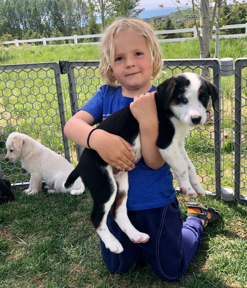 His full name is Quincy Delight the Hedgehog Dog. We’d been wanting to get another dog ever since we moved into this house, with its big fenced yard. Cholula needed a friend to romp around with and keep her active. When a friend of mine fostered a mama dog with her new litter of puppies, rescued from the Navajo Reservation, those wheels in my quarantined brain started turning. We are home all the time right now anyway, right? What better time to bring home a puppy? The boys will love it! They can help with puppy duty! It will be good for Cholula! Before I’d even chatted with John about it, we had a meeting set up to see the pups. When I do things like this, my mom says, “You must like to be busy.” Hmmmm.
