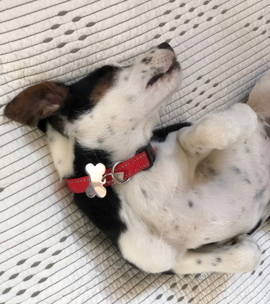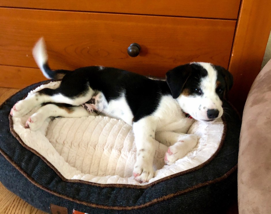 With our kitchen renovation winding down, life just might have something resembling a routine soon, albeit different than it used to be. We are a two-kid, two-dog household and the chaos quotient is HIGH! Our “puppy” is already 5 months old. The important thing is that Quincy knows we are his family and safe place, and we are so happy he’s with us!