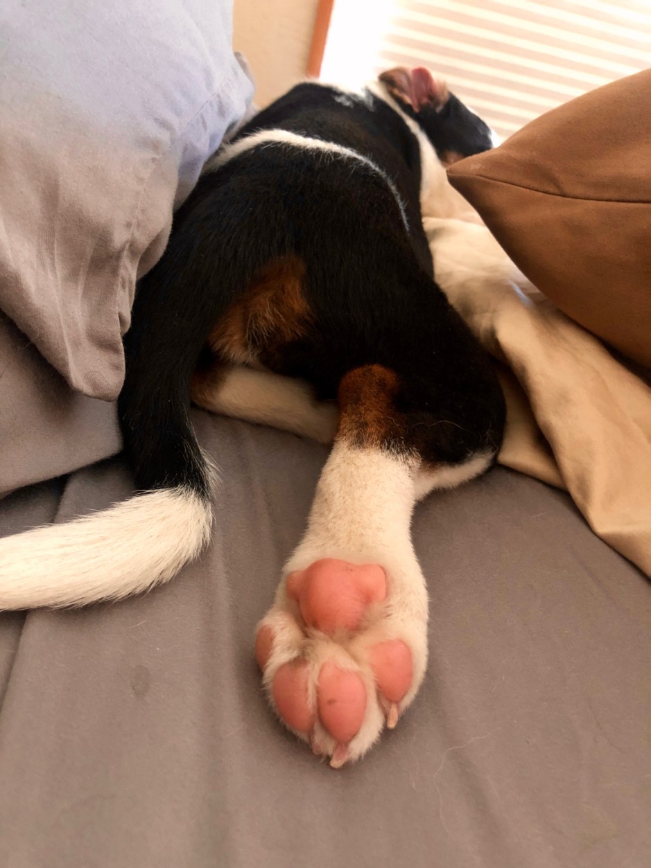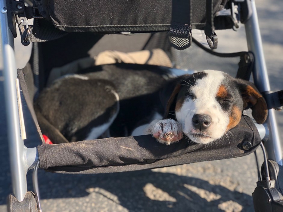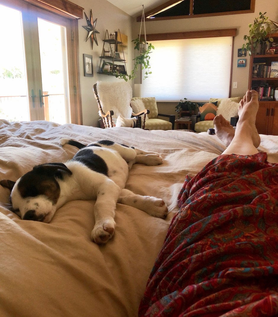 The good news is that Quincy pulled through, recuperated, and is now a happy and rambunctious member of our family. He’s the most expensive rescue dog around, with a big scar on his belly to prove it! We think he may not be the sharpest tool in the shed, and his constantly-wagging tail is somewhat lethal, but he’s such a sweetie. He and Cholula aren’t quite BFFs yet, but they are finally buddies. They zoom around the yard together. They hike alongside each other. They both sleep on the bed (sigh). Quincy still earns the name “trash dog” by stealing various things to chew up, but so far, he hasn’t eaten anything to land him back at the vet. I’m blaming it on teething and calling it a win!