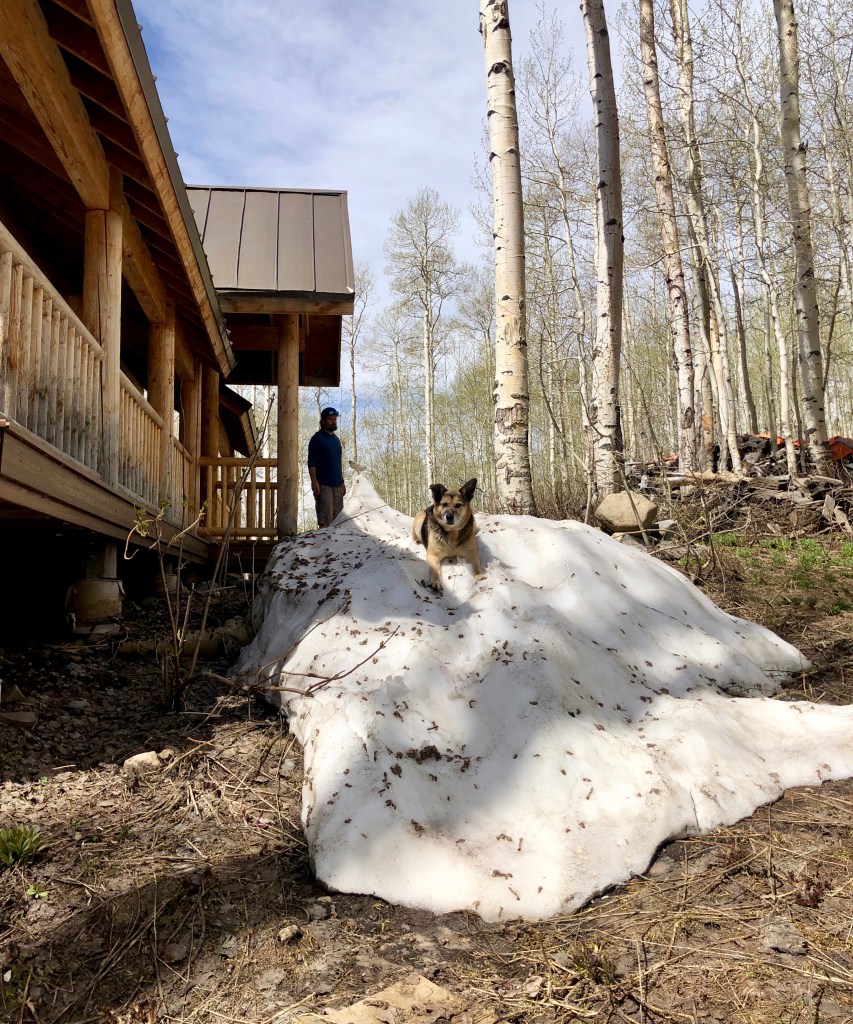 This place was in worse shape than the photos had shown. It was practically buried in snow, which freaked me out. Originally built in the 70s, the house had been updated maybe 15 years ago, but had also been abandoned for over a decade. The exterior was rough, with faded paint and possibly rotten siding in some areas. Trees falling had damaged the roof, which was now under a couple of feet of ice and snow, creating years of leaks. Some updates that had been started had never been completed. There were pieces of the ceiling that were crumbling and rotten, and the carpet had been stained from water coming in. There was plenty of evidence of rodent inhabitants and there holes in the interior siding. We wandered around the house and property for quite a while before hiking back up over the hill. For those snowy miles, I huffed and puffed through the aspens and my mind was working overtime. When we got home, I scrolled through the listing photos again online. By that evening, I’d decided it was the one for us.