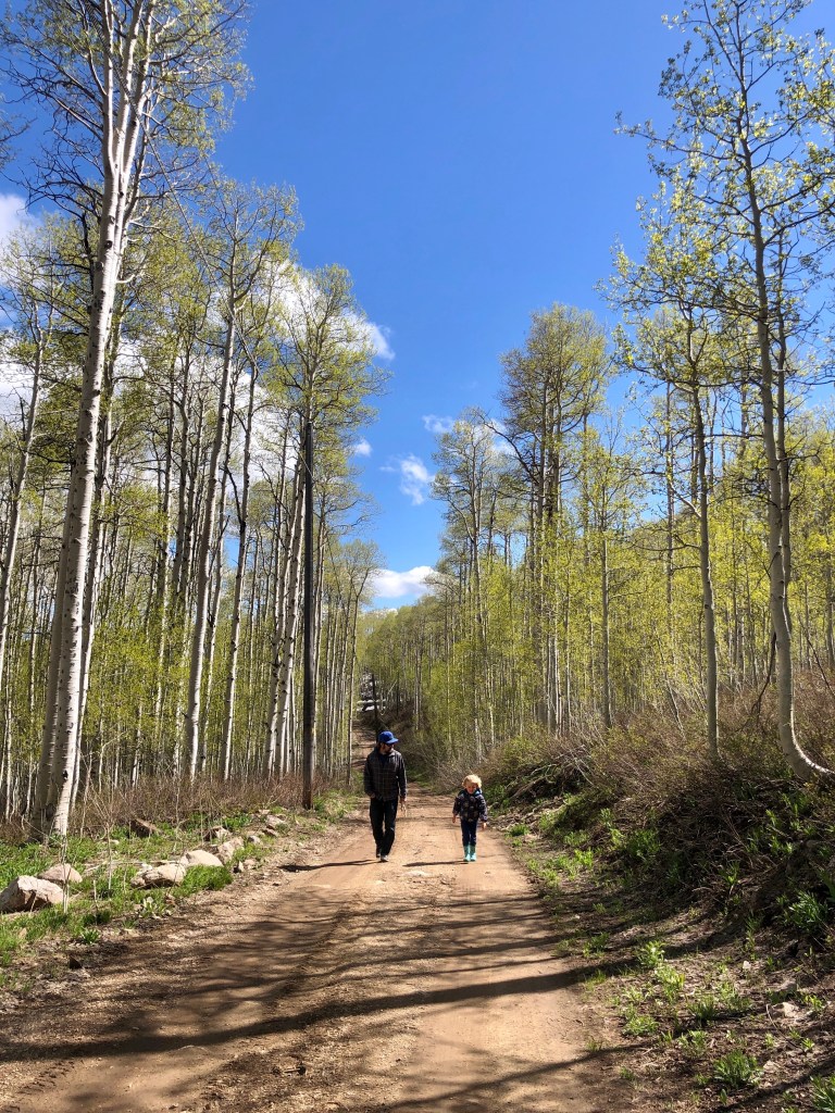 The first projects we did at the cabin were very necessary repairs. We needed a new water heater (the current one’s pipes had frozen at some point) and some plumbing tweaks. We needed to fix the damaged and leaky roof panels. We had some very tall and very dead aspens taken down before they fell on the house and caused more damage, and had a big junk pile/critter condo removed. We also decided to smooth out the driveway and create a flat RV pad for family/friends to park or camp out. John and I took on a little DIY project and dug a proper, more permanent fire pit in the clearing below the cabin. That’s about the extent of the changes we made through the summer…and by fall, I knew this was the best thing we’d done for our family yet.