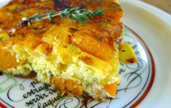 Butternut Squash and Apple Frittata with Bacon and Cheese.